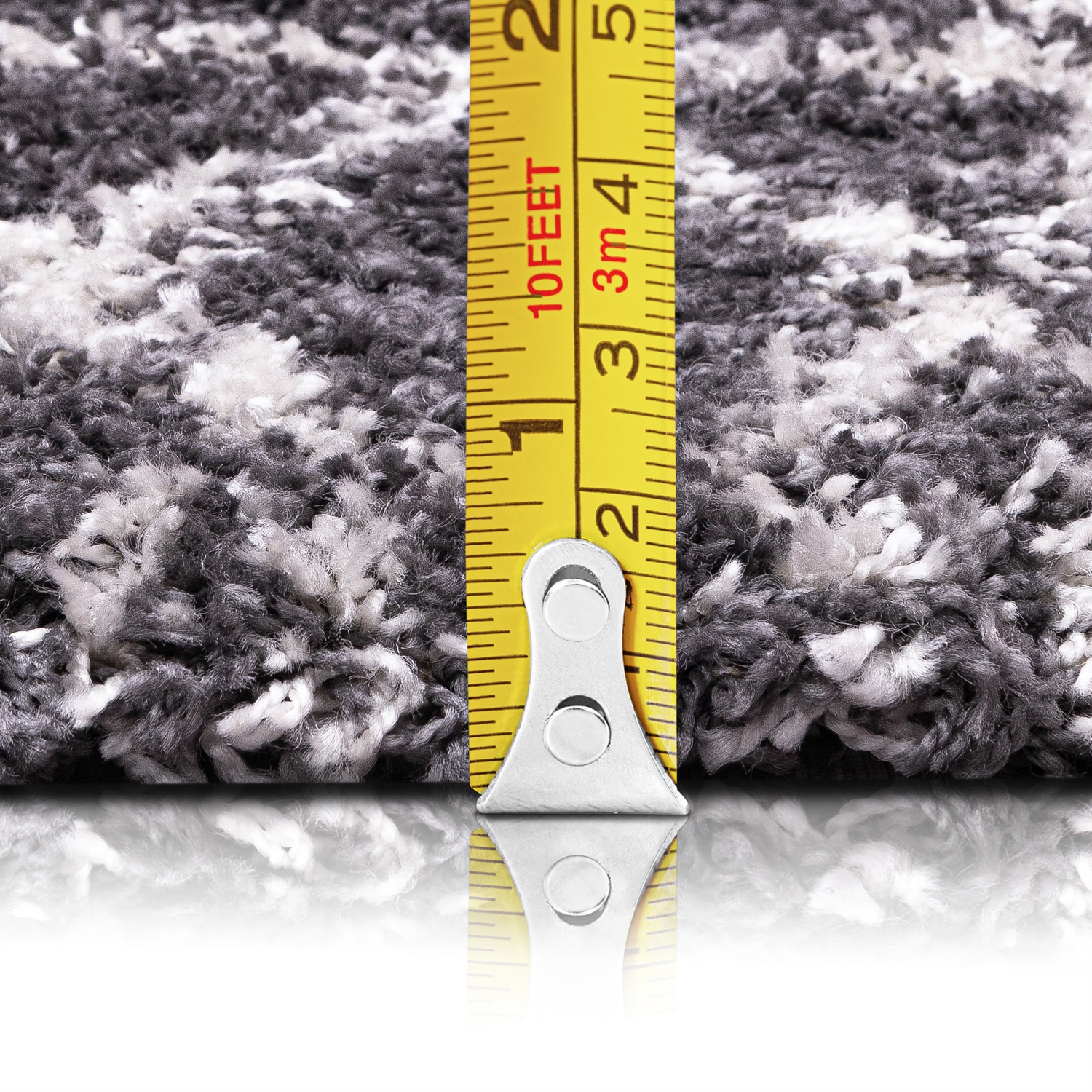 Mega Modern Geometric Grey/White Soft Shaggy Area Rug
