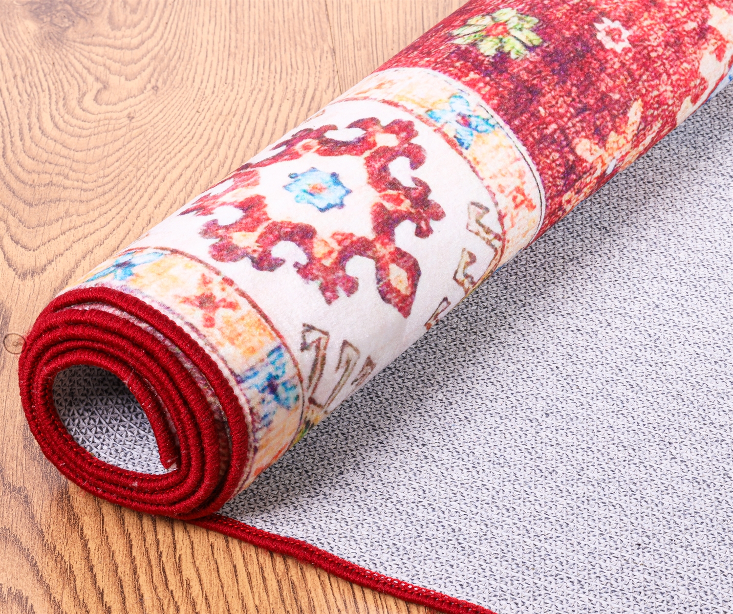 Traditional Flower Design Red 2MM Rubber Backed Hall Runner Rug