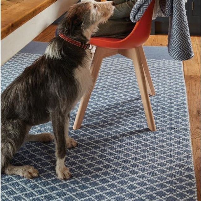 Magnify the sophisticated chic and style quotient of your living room with our Trellis Denim Blue Rug. The blue-cream color of the rug bequeaths your living space with a modern-day look. The subtle design brings emphasis on your interior décor, while maintaining a contemporary outlook. Place it in your living room under the coffee table, in your hallway to create a sophisticated appeal or in your bedroom as a bedside rug, this rug’s sure to accentuate your interior décor. Handwoven from Recycled PET yarns, this rug exudes high durability, resilience, comfort, and easy maintenance.