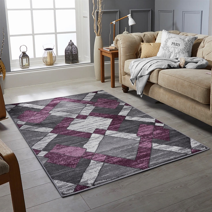 Verona Purple/Grey Modern Triangle Pattern Geometric Carpet Area Rug
